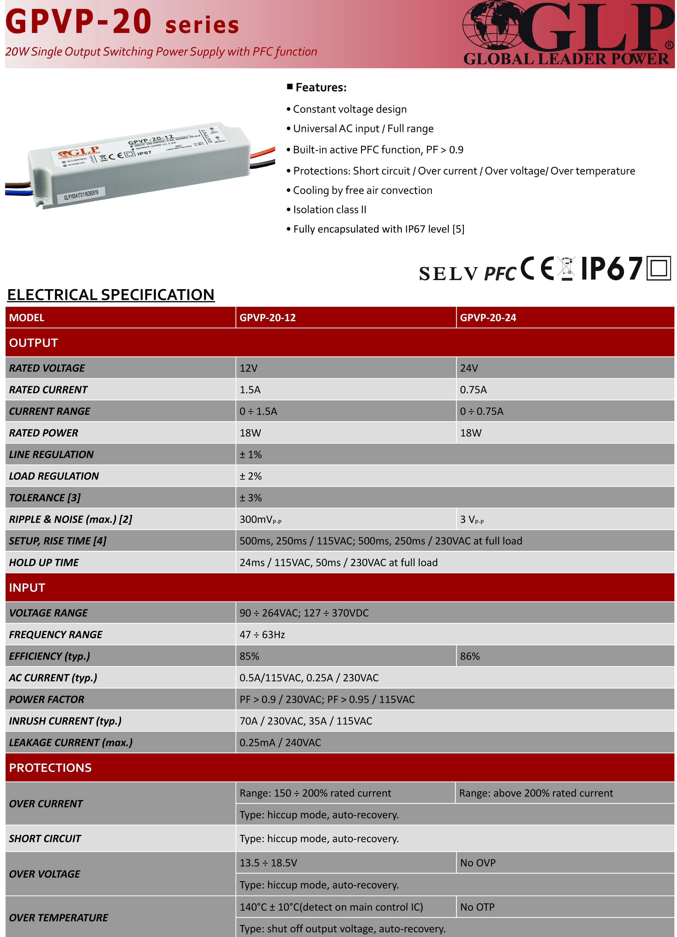 Αδιάβροχο 24W Πλαστικό Τροφοδοτικό 12V IP67 GPV-20 GLP