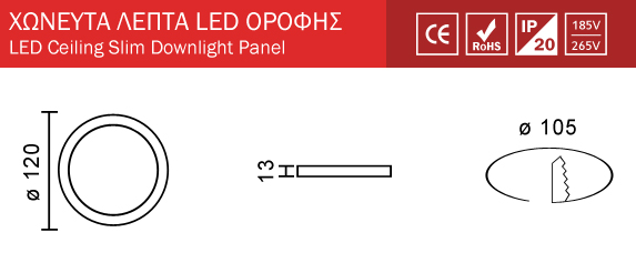 Στρογγυλό LED Panel Slim Downlight 6W SMD Λευκό Σώμα Ουδέτερο Λευκό 4000Κ SpotLight