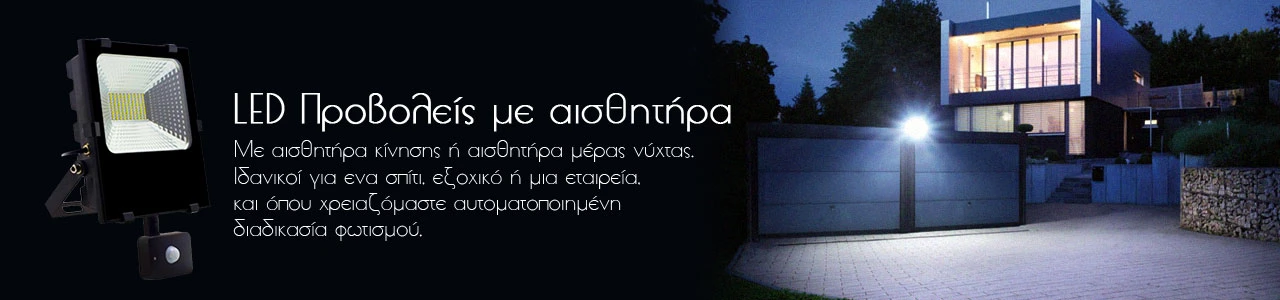 Οι προβολείς με σένσορ κίνησης‐ φωτός με το που ανιχνεύσουν κίνηση ανάβουν.Έχουμε την δυνατότητα ρύθμισης τόσο της φωτεινότητας του περιβάλλοντος χώρου όσο και του χρόνου όπου ο προβολέας παραμένει αναμμένος.Watt: 50W
