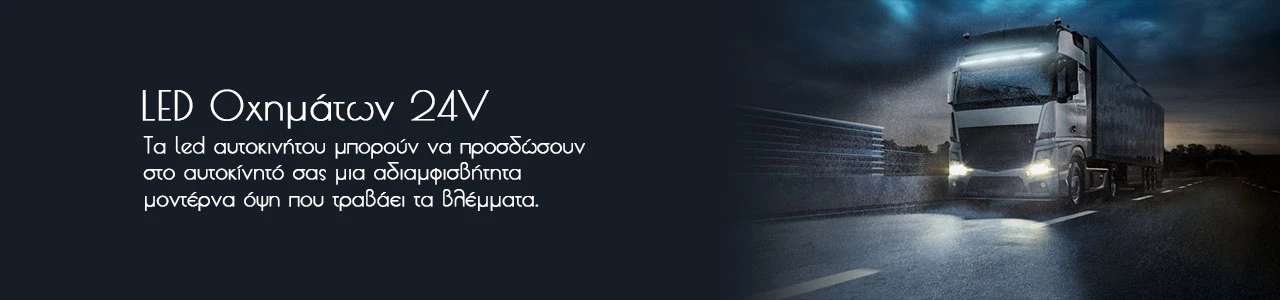 Στον Ledokosmo θα βρείτε μια μεγάλη ποικιλία σε λάμπες led οχημάτων για να έχετε μια μεγάλη επιλογή σε ανταλλακτικά και διακοσμητικό φωτισμό για το αυτοκίνητό σας. Ανακαλύψτε στο ηλεκτρονικό μας κατάστημα μια ποικιλία σε λάμπες led 24 Volt για φορτηγά όπως led λάμπες σωληνωτές, led λάμπες Τ10, προβολείς φορτηγού 24 Volt, led φανάρια για τρέιλερ, λάμπες led φωτισμού φορτηγών, led λάμπες όγκου και πλευρικά led ώστε να μην λείπει τίποτα από το όχημα σας. Με τον σωστό και κατάλληλο φωτισμό στα επαγγελματικά φορτηγά θα νιώθετε μεγάλη ασφάλεια στις μακρινές αποστάσεις ενώ μπορείτε να βάλετε την προσωπική σας πινελιά επιλέγοντας το χρώμα των λαμπτήρων που θέλετε να έχει το όχημά σας. Ανακαλύψτε στο ηλεκτρονικό μας κατάστημα μια μεγάλη ποικιλία σε λάμπες led για σκάφη και για οχήματα παντός τύπου από τα κορυφαία brands της αγοράς!