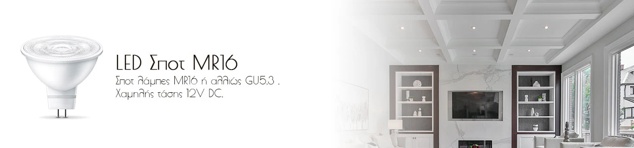 Τα MR16 ή αλλιώς GU5.3 έχουν την ίδια διάμετρο με τα GU10 απλά η μόνη διαφορά τους είναι οτι δουλεύουν με χαμηλή τάση 12V DC. Υπάρχουν στην αγορά μερικά MR16 τα οποία δουλεύουν με 230v αλλά βάση ευρωπαϊκής οδηγίας από το 2018 αποσύρονται καθώς θεωρούνται επικίνδυνα προς χρήση. Όλα τα σποτ αυτού του μεγέθους ανεξαρτήτου τροφοδοσίας θα τα βρείτε στην αγορά και με την ονομασία GU5.3 Μπορείτε να τα συνδυάσετε με τις θήκες σποτ που θα βρείτε στο ηλεκτρονικό μας κατάστημα!