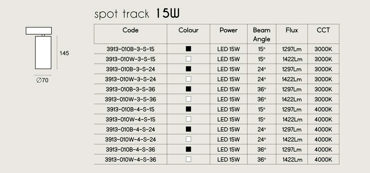 Track Spot Οροφής 15W CRI>90 UGR<19 HERCULES - VIOKEF