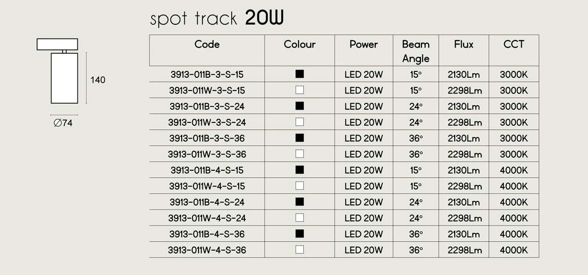 Track Spot Οροφής 20W CRI>90 UGR<19 HERCULES - VIOKEF